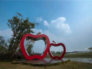 專業(yè)定制蕪湖蘋果主題不銹鋼雕塑——浙江藝通藝術(shù)(12年源頭工廠)